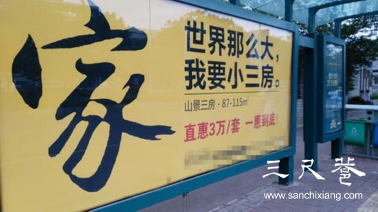 近年來,雷人房產(chǎn)廣告比比皆是,就說出現(xiàn)“我要小三房”的德陽(yáng)吧:去年,德陽(yáng)出現(xiàn)“買房送老婆”的廣告,引發(fā)當(dāng)?shù)厥忻褡h論。盡管房產(chǎn)商解釋是“買房送給老婆”的意思,但公眾讀出的卻是房產(chǎn)商的炒作