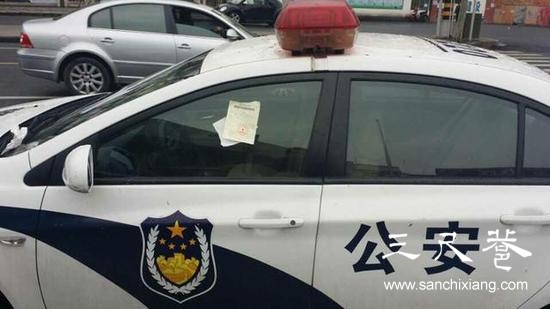 3月27日13時17分左右,網(wǎng)友@jhsiang向微博達人@鋼筆様子私信,稱在上海江場三路汶水路看到一輛停著的警車,車身被交警貼上違規(guī)停車罰單,并向@鋼筆様子提供罰單和被罰警車照