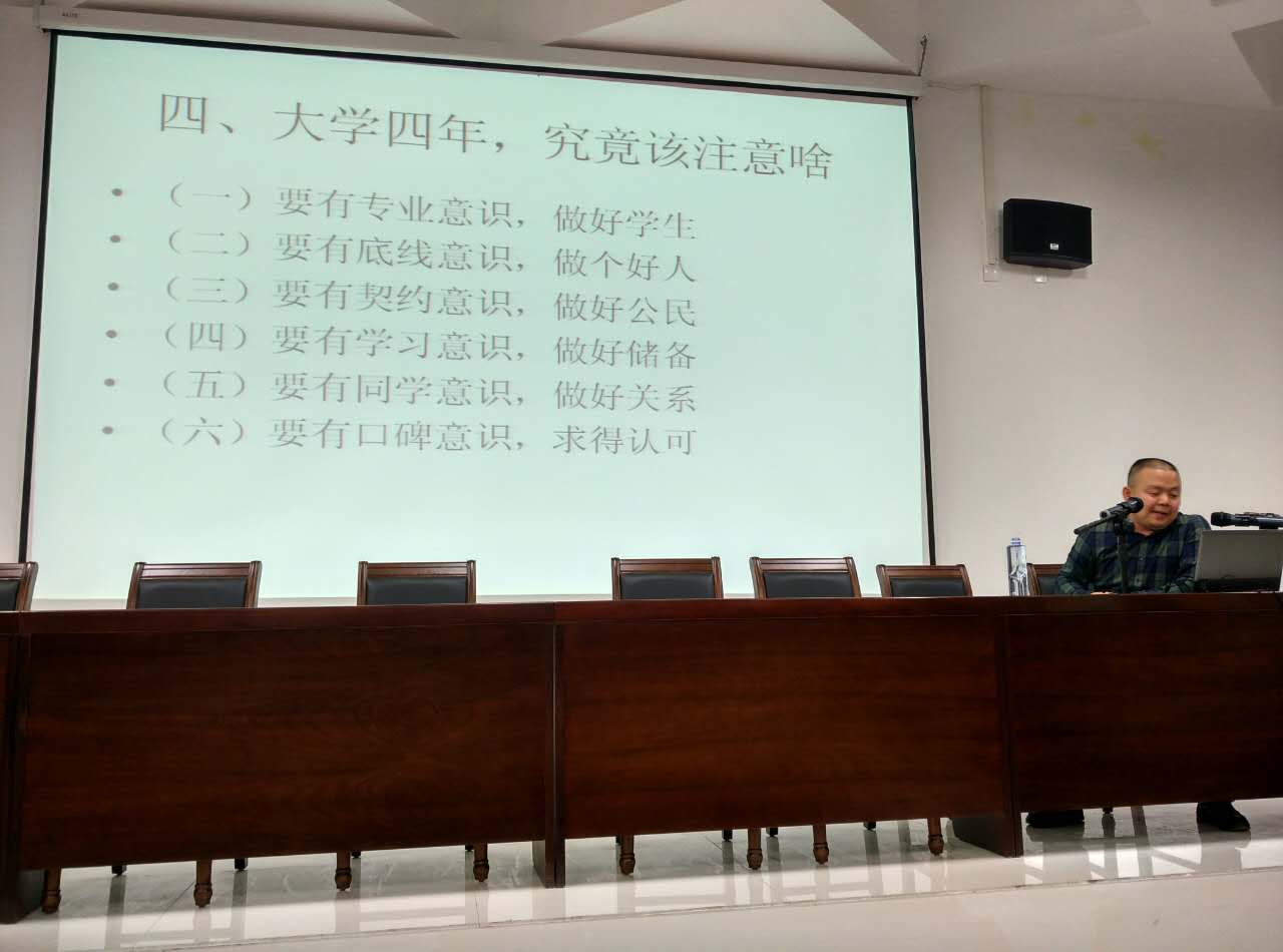 張洪泉以生動樸實的話語,娓娓道來大學四年的經歷,通過自己從普通學生到政治系學生會主席的歷程,告訴與會者學好專業(yè)課、參與社會活動、遵守規(guī)矩、日積月累、發(fā)揮特長的重要性,成功的原因主要是堅持。他結合這些年來自己時評寫作的案例,告訴同學們什么是正能量,如何去弘揚正能量,如何在服務社會中實現自我價值。結合自身經驗和各高校案例,張洪泉建議大學期間要樹立六種意識,即專業(yè)意識、底線意識、契約意識、學習意識、同學意識、口碑意識,做一個高素質、對社會有價值的人才。