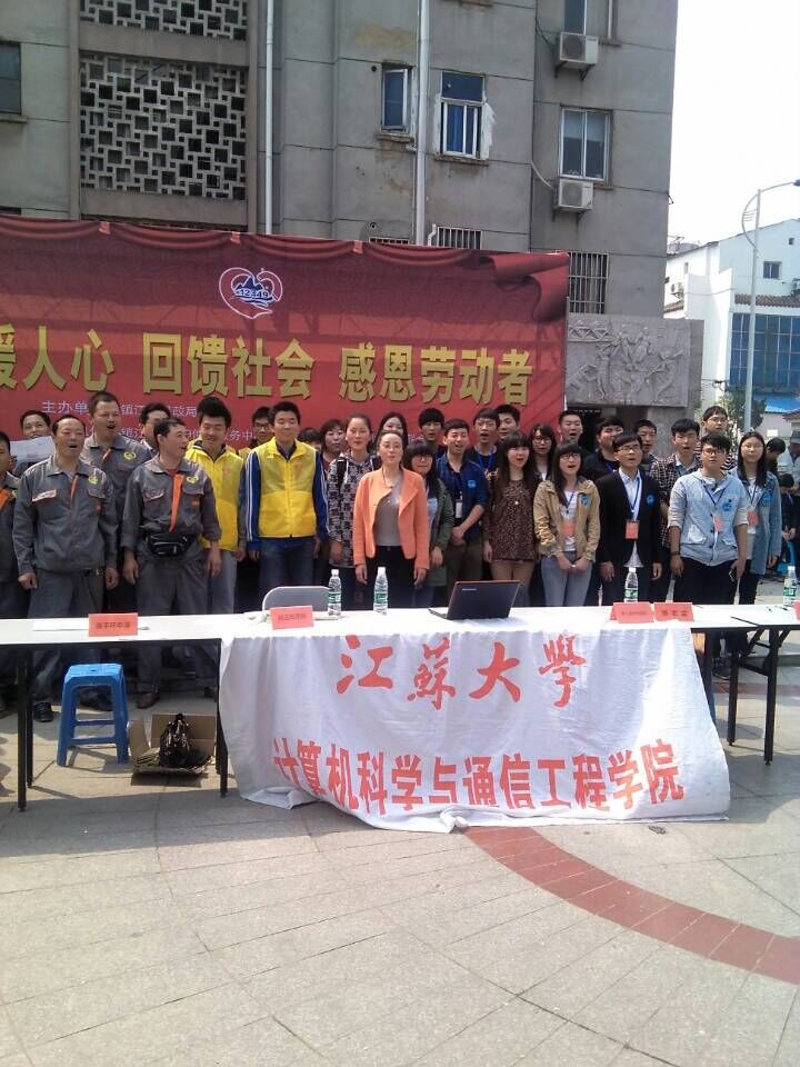 溫暖人心,回饋社會,感恩勞動者。2015年4月25日,計算機學(xué)院青協(xié)實踐部聯(lián)合鎮(zhèn)江民政局等單位于法制文化廣場共同舉辦了大型感恩回饋活動,為辛苦工作的勞動者獻出自己的一份愛。