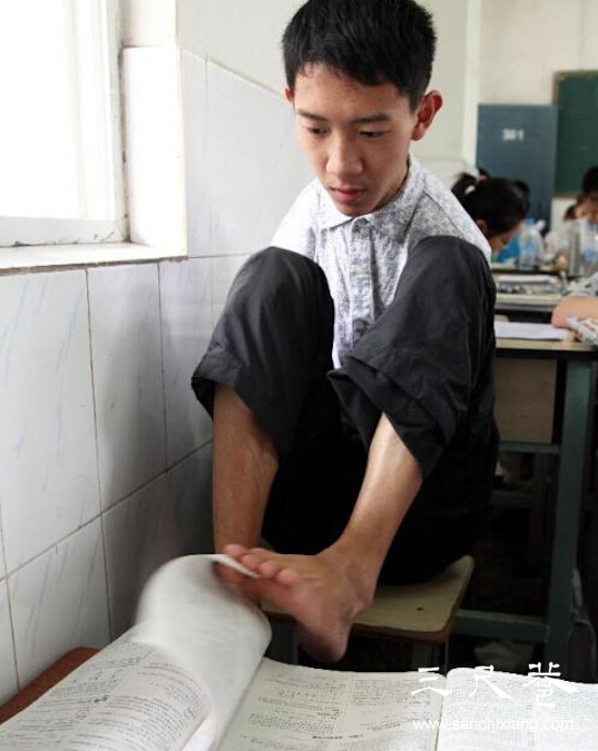 今年20歲的彭超,是攀枝花市七中的一名高三學(xué)生。6歲時(shí),因觸電失去雙臂,他開始練習(xí)以腳當(dāng)手,克服了常人難以想象的種種困難,學(xué)會(huì)了用腳寫字、穿衣、吃飯、上網(wǎng)。去年,彭超參加高考,用腳答題,考出了538分的成績,但遺憾的是,因?yàn)橛媚_寫字,答題速度受到影響,他與理想中的大學(xué)失之交臂。之后,他選擇了復(fù)讀。今年5月,彭超已通過學(xué)校向招辦提出書面申請(qǐng),希望今年高考中,能適當(dāng)延長他的考試時(shí)間。(6月2日《華西都市報(bào)》)