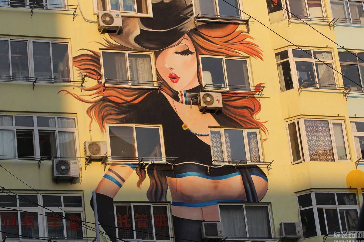 據(jù)報道,1月14日,山東省青島市,臺東商業(yè)街一居民樓上出現(xiàn)性感美女的巨幅墻繪,最大的有七層樓之高。這些墻繪都是一些穿著時尚、略顯暴露的大胸美女,引起熱議,有市民