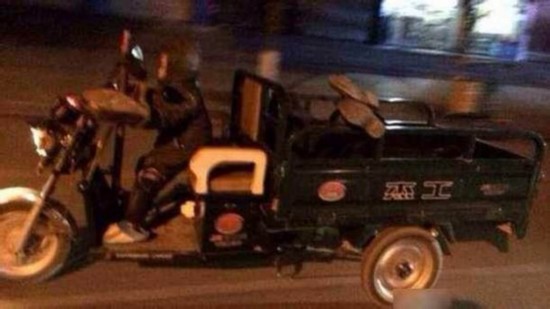 廣西宜州市一男子在城北飲酒至深夜,醉倒不省人事,其七歲的兒子穿著棉拖、開三輪車來回20多公里,接回了醉酒的父親。照片顯示7歲男童操作三輪車嫻熟淡定。(1月9日《人